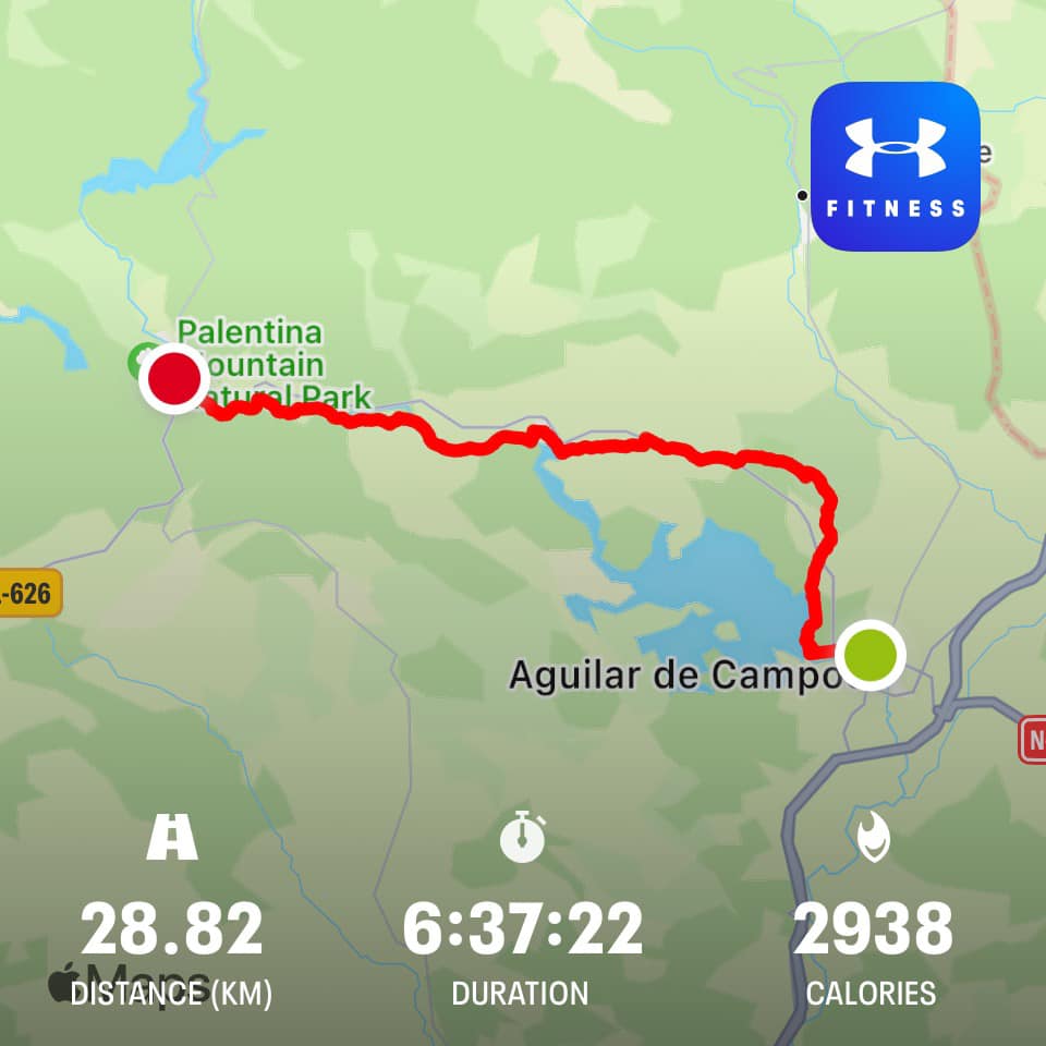 At 18km, after a pit stop and a KAZLimon, the trail crossed a river and generally followed it for 12km to Cervera. This river has a very healthy population of trout. I saw probably a hundred or so varying in size from 12”-18”. Made me wish I had a pole.