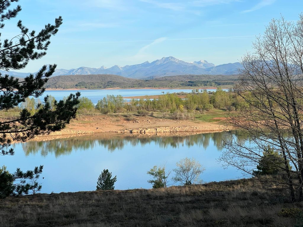 Today was 29.5km of shadeless asphalt/concrete and hard packed farm track. I started out an hour early after getting a refreshing down day in Aguilar. Headed towards the dam and then up and over, not to cross it. Then through pastures, pastures, more pastures. 18km to the first pit stop – only drinks, no food. Good thing I brought some pinchos I bought to go the day before…. The Camino only took me next to the resevoir for about 2km, and then a forest was between the trail and the resevoir, so viewing opportunities were limited.