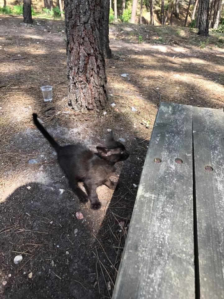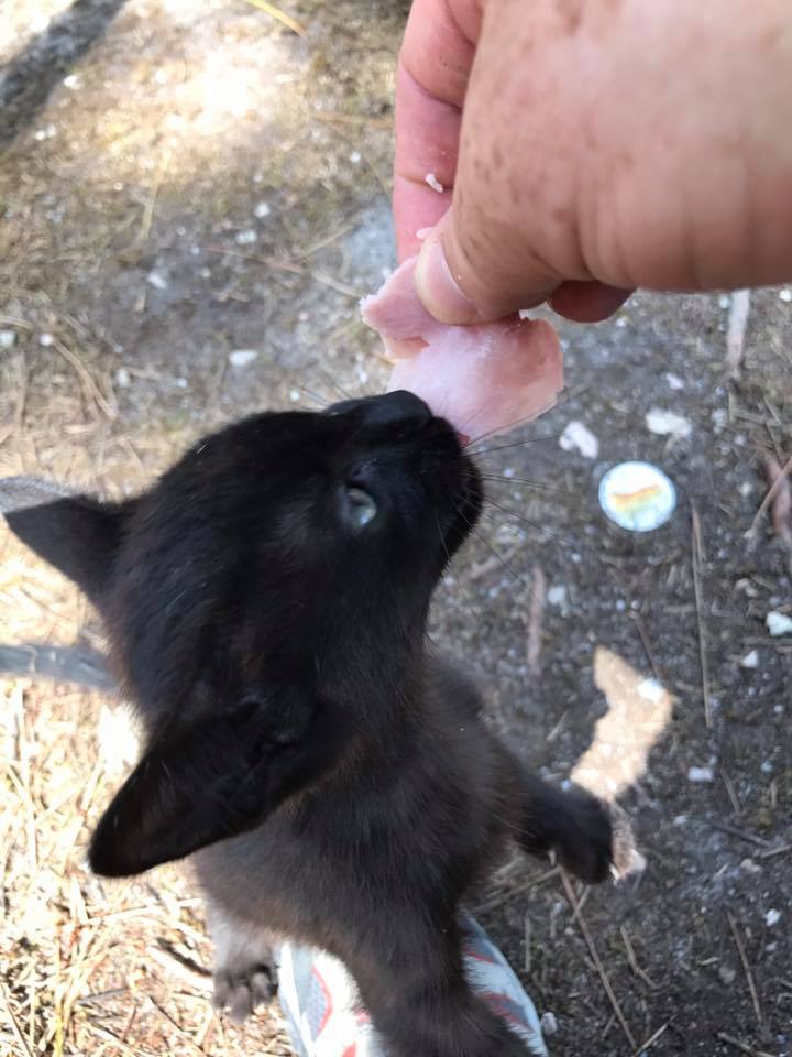 I sat down and it was mewing quite a lot. It was really hungry. Probably lost its mom as it was only about four weeks old.