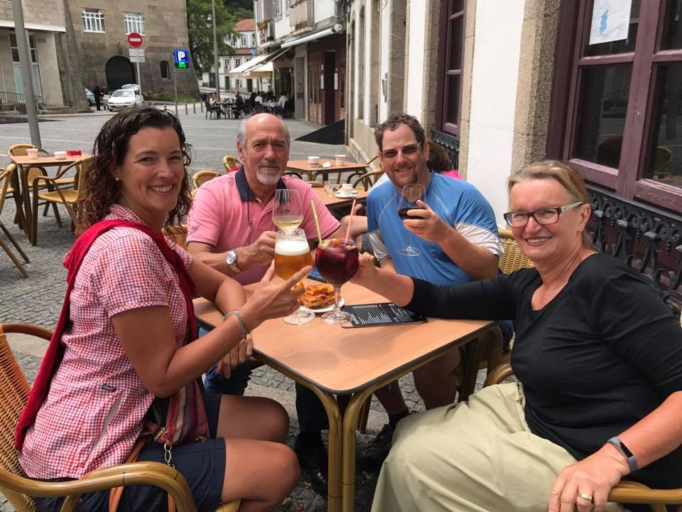 Checked into the albergue, showered and then off to the Compostela office. A three hour wait dissuaded us and we created an impromptu group to get all of our Compostelas processed while we went out for drinks and pastries and met more friends.