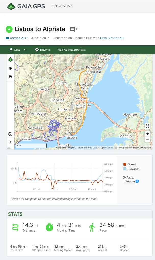 Tomorrow will likely be a short day but I will end up traveling 60Km. I’m going to bypass the industrial suburbs of Lisbon and take the train to Azambuja. Then again, I might not. I guess tomorrow will tell.