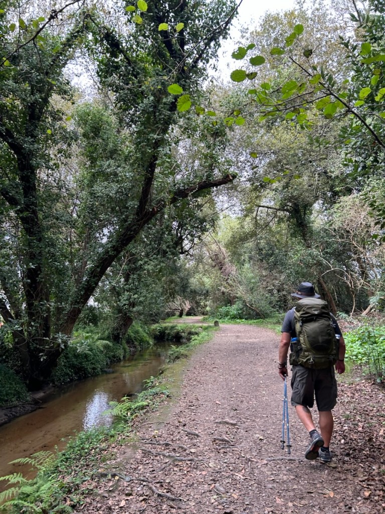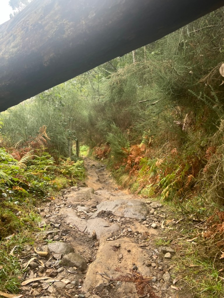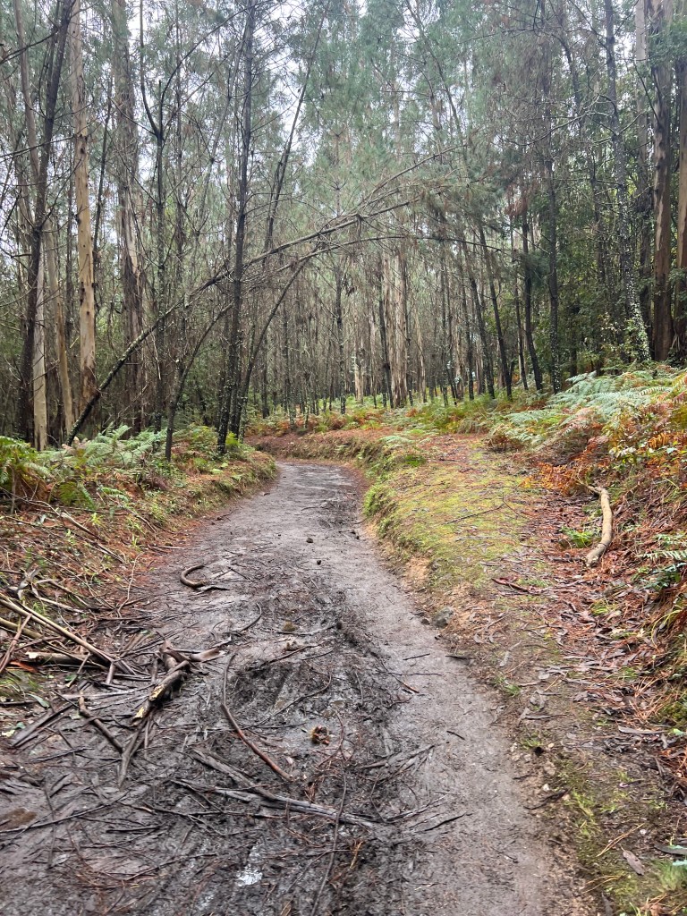 The day was split between two worlds: half spent on soft forest paths, the other on asphalt as the city loomed closer. The peaceful forest stretches invited introspection, my thoughts meandering like the trail itself. Then, as the rural turned urban, my focus shifted to navigating Santiago’s outskirts, a growing buzz of anticipation propelling me forward.