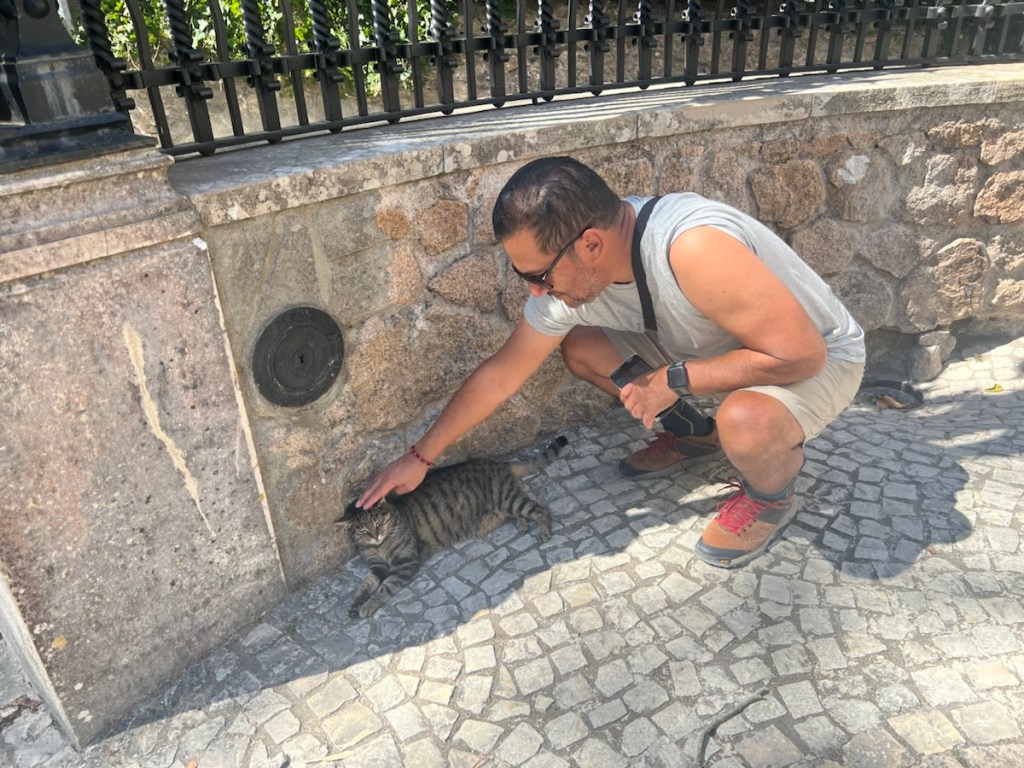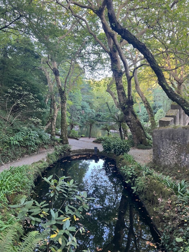 After leaving the palace, we wandered down through the forest, taking in the serene beauty of the surroundings. I got a bit carried away, choosing the scenic path at every turn, which extended our walk a little longer than planned. By the time we reached the town for lunch, around 11:30, the restaurants hadn’t opened yet, but the wait was worth it. I had bacalhau (codfish) baked to a crisp in a slightly sweet glaze—easily the best meal I’ve had in Portugal so far.