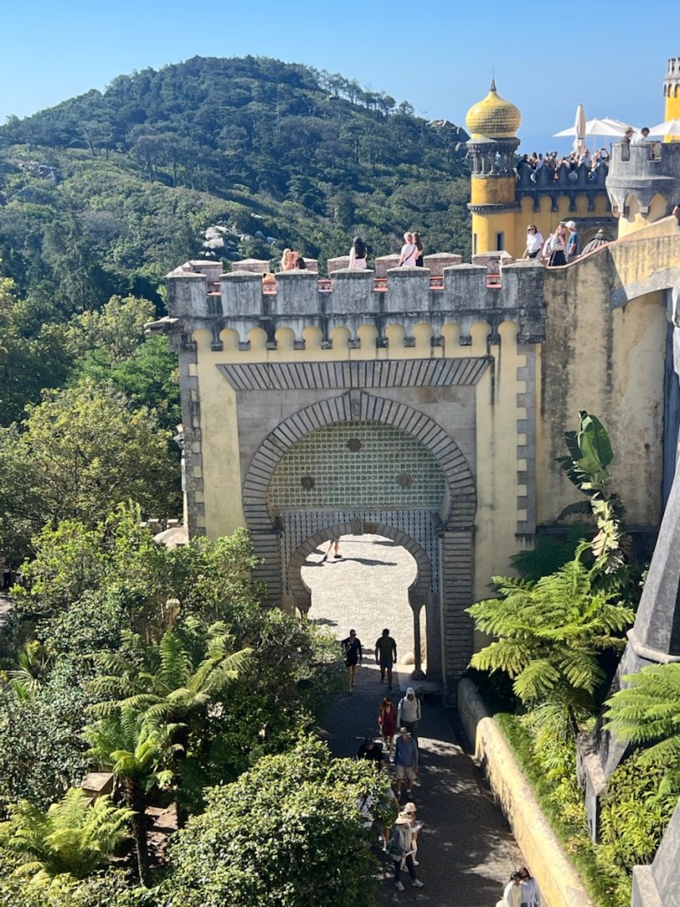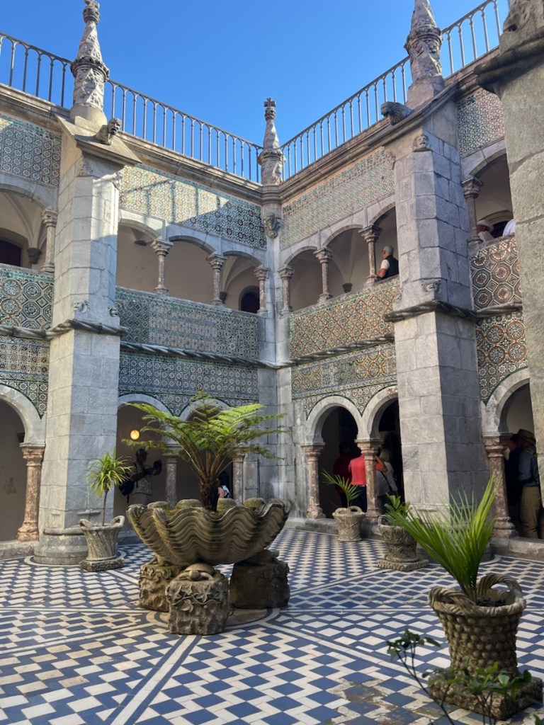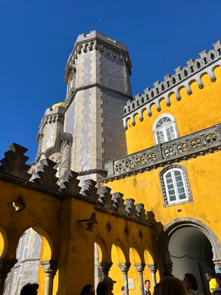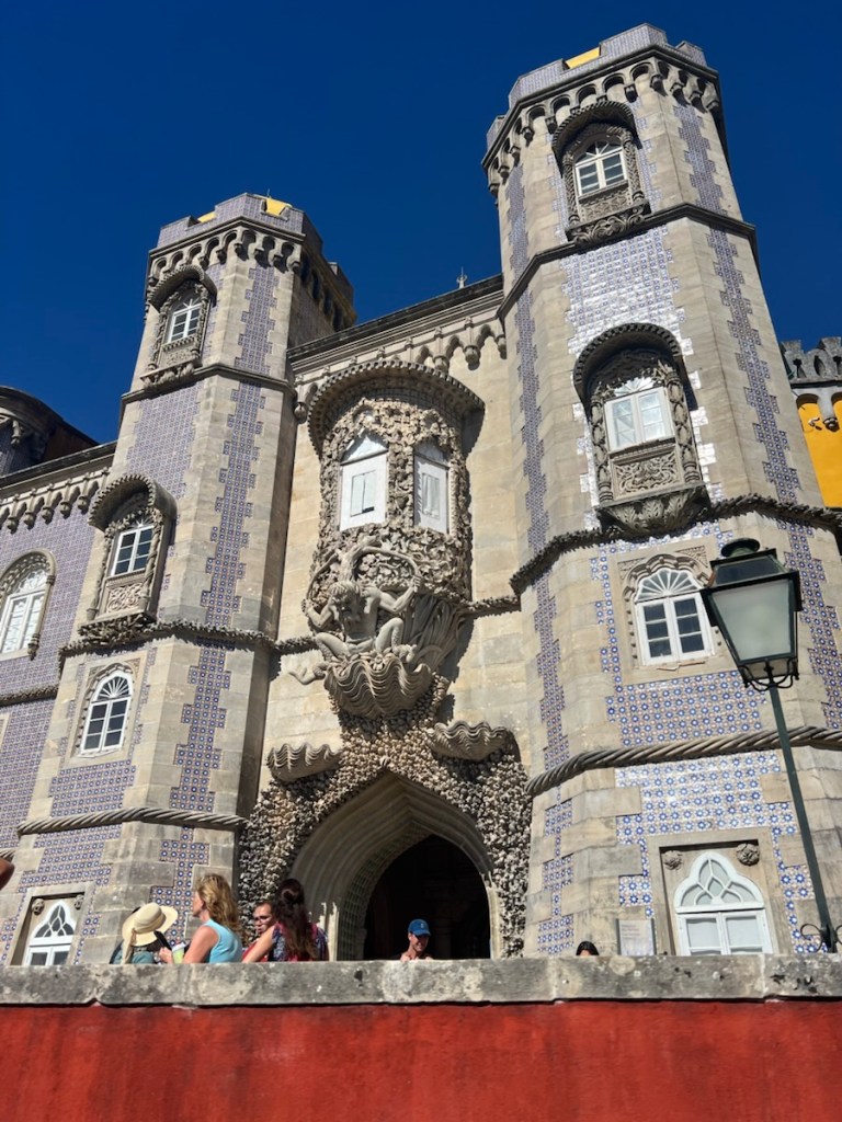 The Palacio da Pena is incredibly popular, and entry times are strictly controlled. We arrived at 9:30 am and found the line manageable, though once inside, the palace was crowded, making it hard to take in all the details. The palace is a blend of architectural styles—Moorish, monastic, and royal—each era leaving its mark on the structure. The grandeur was overwhelming, though, as expected, there was little mention of the people who kept it all running behind the scenes.
