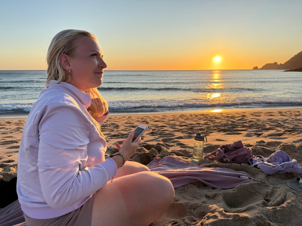 That evening, we met Pav from the Czech Republic, who carried a kindness that felt rare and luminous. She gathered us all to the beach with a picnic she had assembled from the local market. We watched the sun slip beneath the sea and shared a simple meal, salt in the air, laughter curling into the dusk.